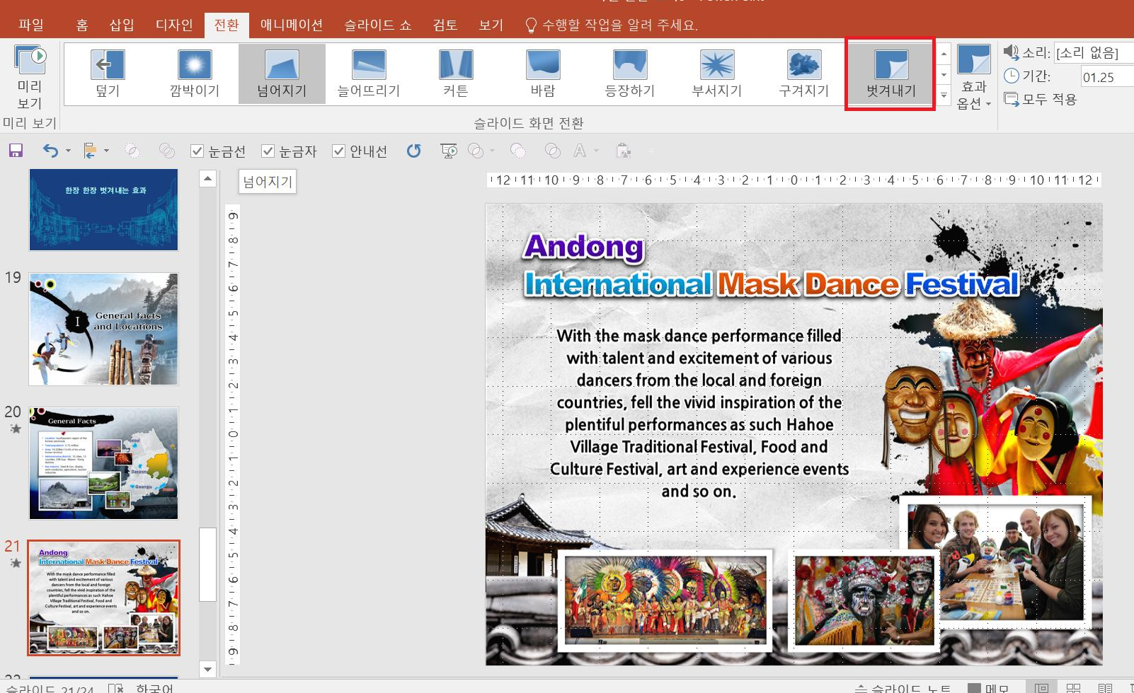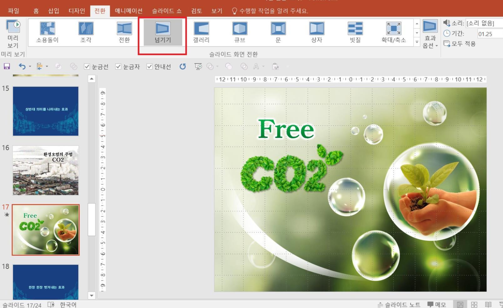 화면 전환은 슬라이드와 슬라이드가 바뀔 때 주는 효과입니다.